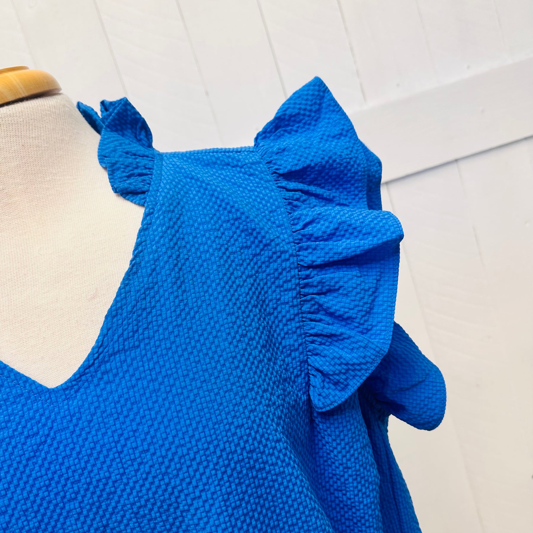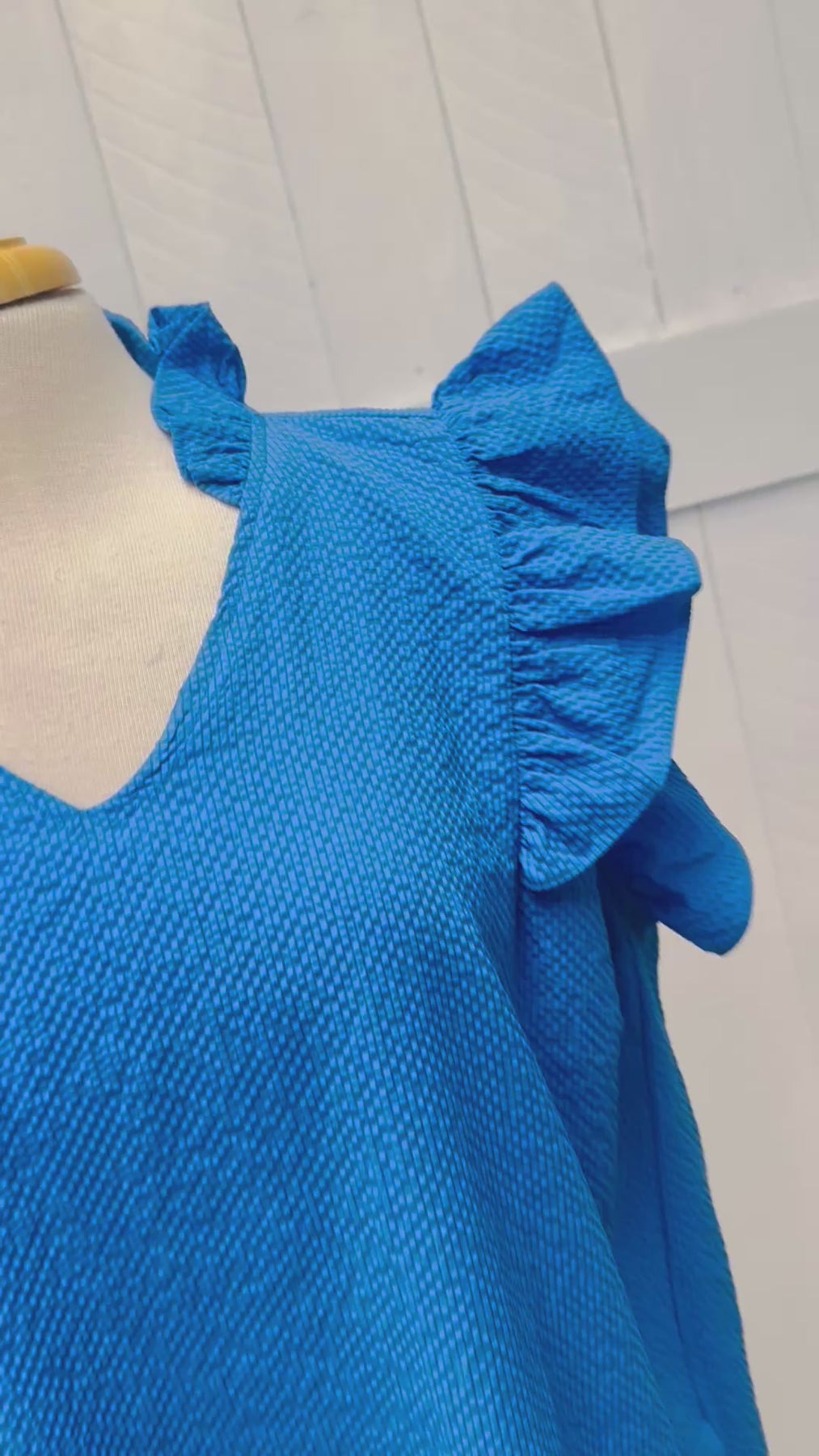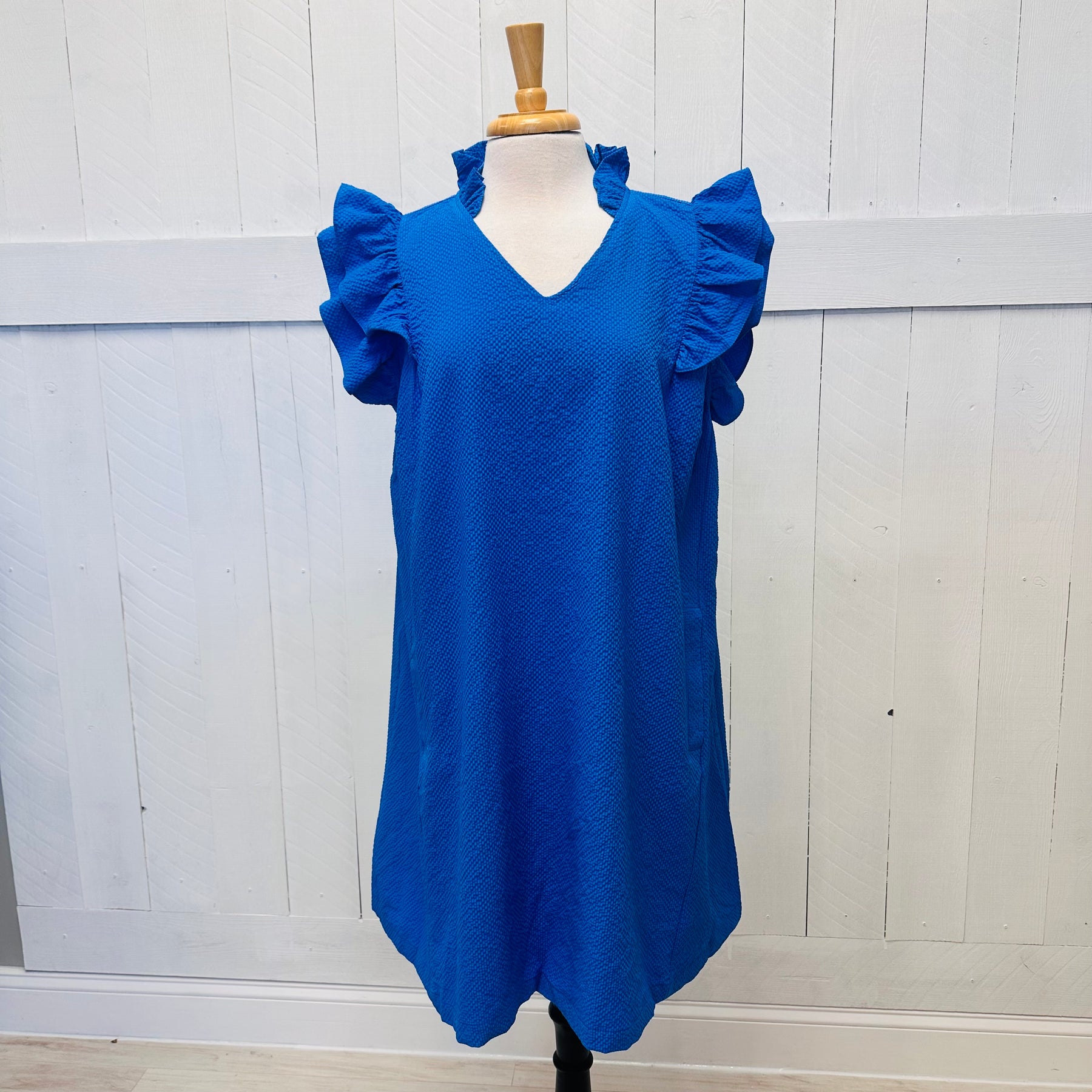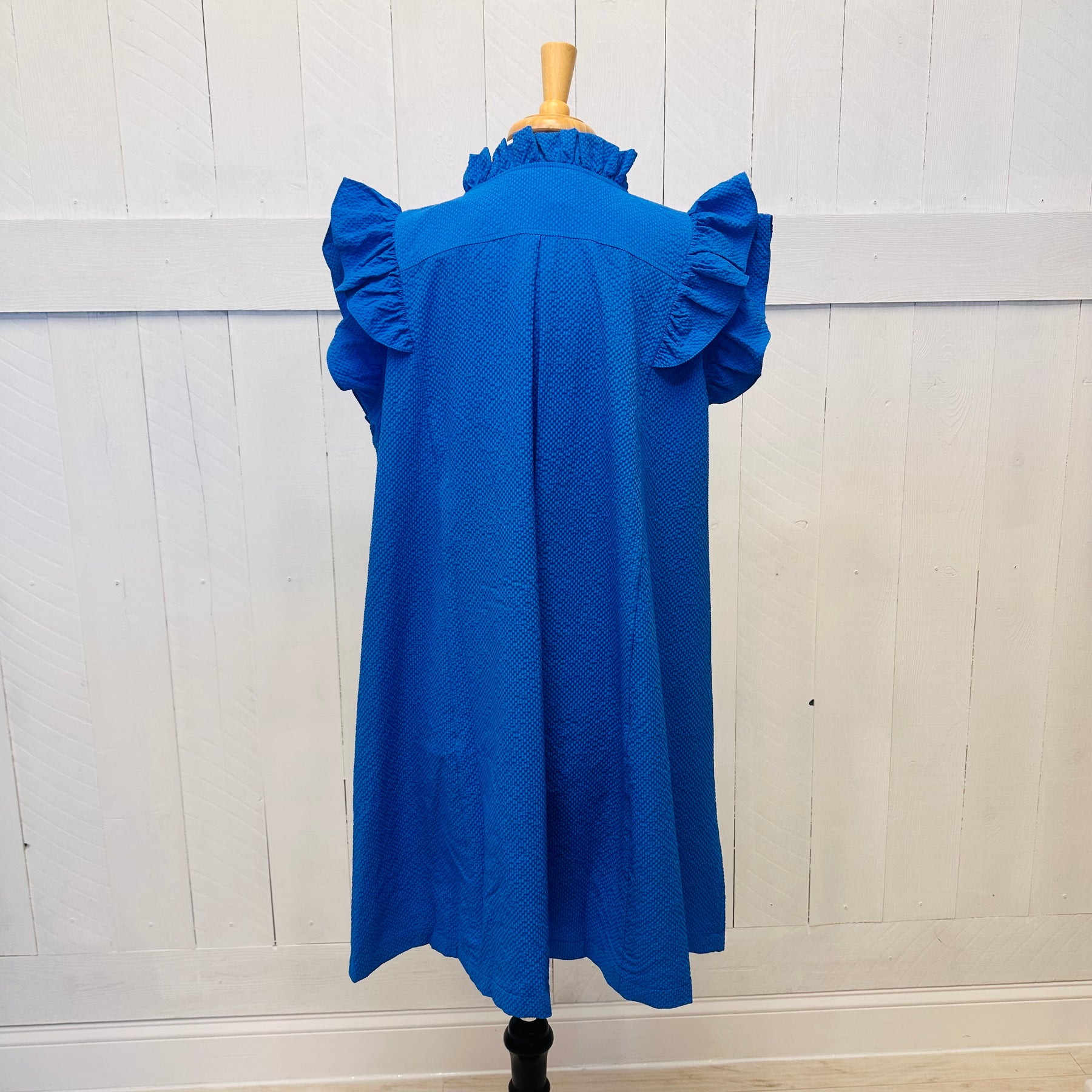 The Women’s Blue Ruffle Sleeve Dress features an elegant design that combines style with practicality. The ruffle sleeves offer a flattering silhouette while enhancing comfort and ease of movement. Ideal for various occasions, this dress provides versatility and a refined aesthetic.