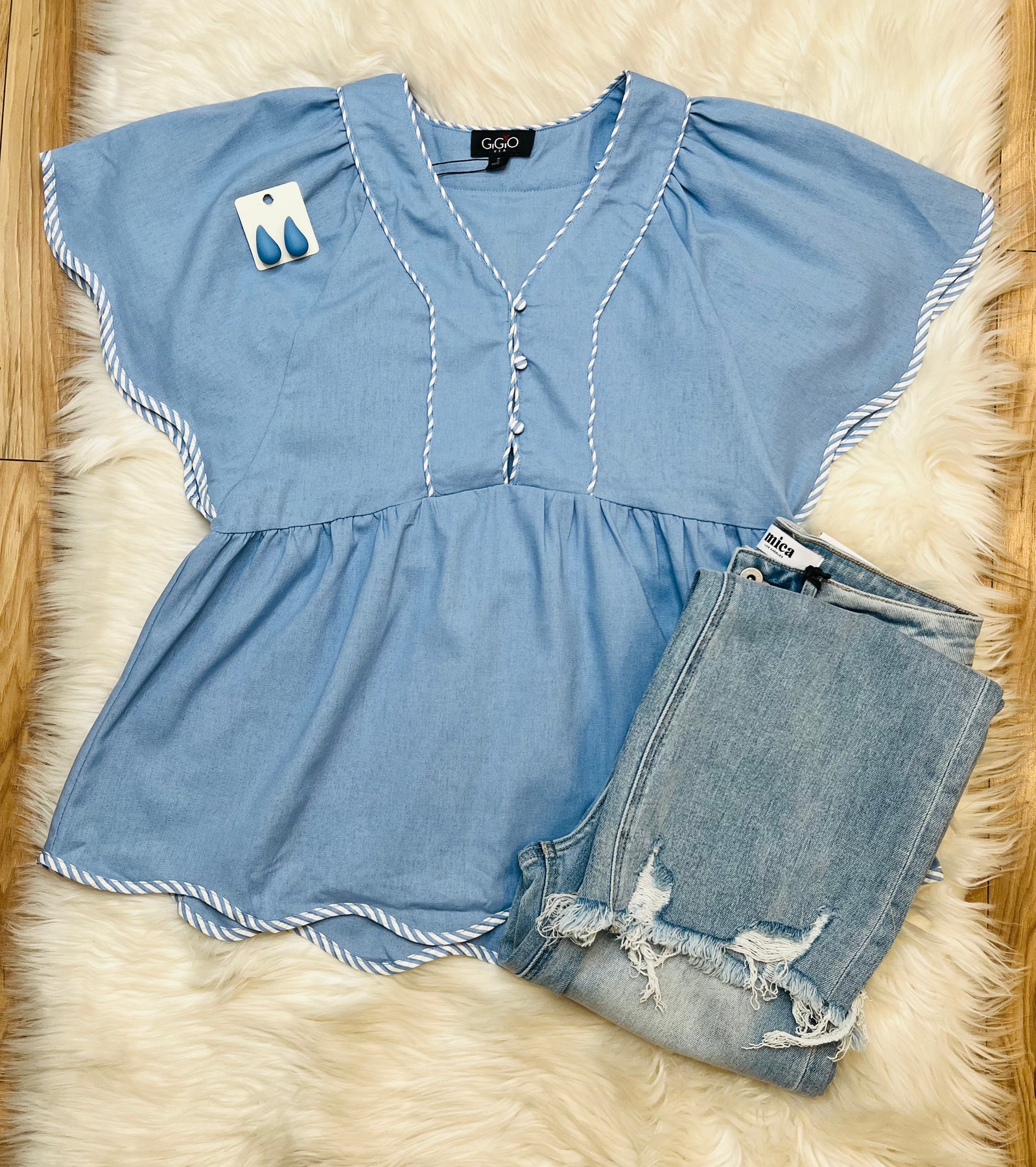 The Women’s GiGiO Light Blue Scalloped Top offers a refined silhouette complemented by scalloped edges, enhancing both style and comfort. Its fabric composition ensures breathability, making it suitable for various occasions. This top seamlessly combines elegance with practicality, appealing to those seeking versatile wardrobe options.
